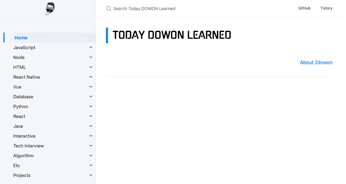 첫 번째 방법은 지금 회고용으로 쓰고 있는 티스토리를 이용하는 것이다. 개인적으로 개발자 블로그라면 GitHub로 만들어야지 라는 생각이 있었는데, 이번에 갑자기 배포에 문제가 생기면서 블로그를 바꿔야되는 상황이 생긴 것도 그렇고, 이미 회고용 블로그로 쓰고 있는 티스토리가 있는데다가 회고용이랑 TIL 블로그 두개를 가지고 있는게 좀 그래서 예전부터 합쳐야지 했던 마음도 있고 해서 이번 기회에 티스토리 블로그로 합쳐봐야지 했다. 그래서 이전 TIL 글 몇 개를 티스토리에 올려봤는데 음 뭔가 영 마음에 안들었다. 일단 커스텀이 안되어서 예쁘지가 않았다. 어떻게보면 TIL 블로그를 가장 많이 보는 사람은 나인데, 내가 보기에도 안 예쁘고 가독성이 좋지 않아서 하루이틀 정도 글을 올려보다가 말았다.