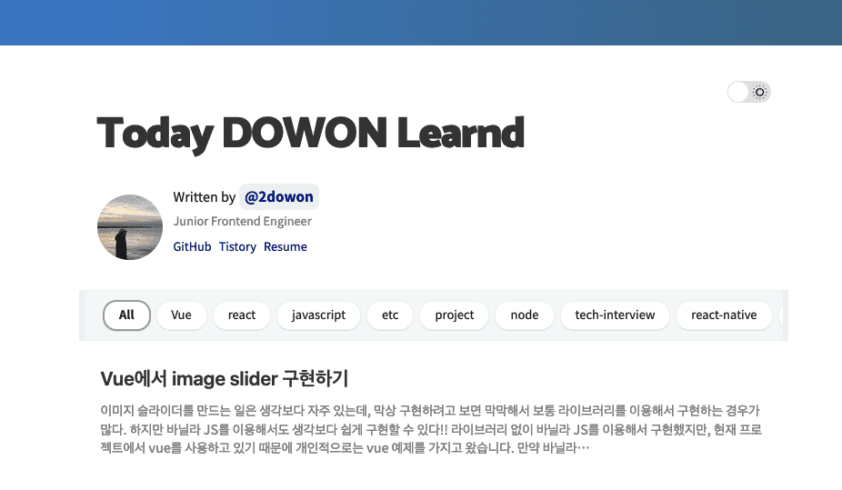 좀 더 원인을 찾아서 최대한 살리는 방향도 고민을 했었는데, 기존에 쓰고 있는 블로그도 일년 넘게 쓰다보니 약간 불편한 점들이 생겨서 이참에 아예 버리기로 한거다. 먼저, 흔해졌다. 사실 GitHub 블로그 중에서 개츠비를 이용한 이유는 그 전에 jekyll 블로그를 만드는데 실패하고 성공한게 개츠비였기 때문이다. 개츠비 테마 중에서는 한국 프론트엔드 개발자인 JBEE 님이 만든 테마가 가장 설명이 잘되어있었고 따라하기가 쉬었다. 저 블로그를 만들때까지만 해도 이제 막 프로그래밍을 시작했을 때라 최대한 자료가 많고 쉬운 것으로 하고 싶었다. 근데, 그렇게해서 1년 넘게 쓰다보니 요즘은 대부분의 TIL 블로그가 이 디자인인 경우가 많았고, 나는 내가 커스텀할 수 있는 블로그를 만들까 라는 생각만 가지고 미뤘는데 드디어 만들때가 온 것이다..ㅎ 그리고 검색 기능이 없어서 아쉬웠다. 내가 가장 많이 보는 블로그인만큼 나는 사실 잘 찾지만, 다른 사람들은 검색도 되면 더 원하는 정보를 찾을 수 있을 것 같은데 검색 기능이 없어서 그게 좀 아쉬웠다. 마지막으로 최신글 위주로 보여지는 UI가 마음에 들지 않았다. 원래는 알고리즘 문제 풀이도 TIL에 올리고 싶었는데, 그러다보면 최신글이 다 알고리즘 글이 되어버려서 뭔가 민망하기도 하고.. 좀 그랬다. 쨋든 이런 이유들로 블로그를 바꿀까 생각하던 차에 어쨋든 반강제로 바꾸게 되었다.